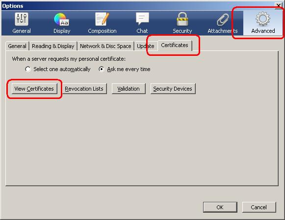 Select the "Advanced" section, and then the "Certificates" tab. Then press the "View Certificates" button.