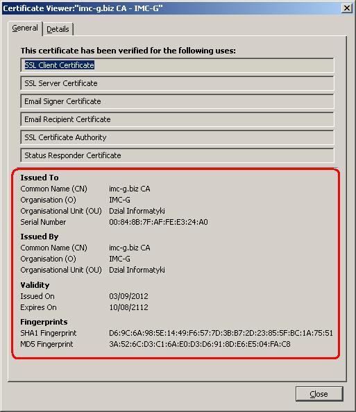 If certificate information does not match, please send us a notification to ca@imc-g.biz